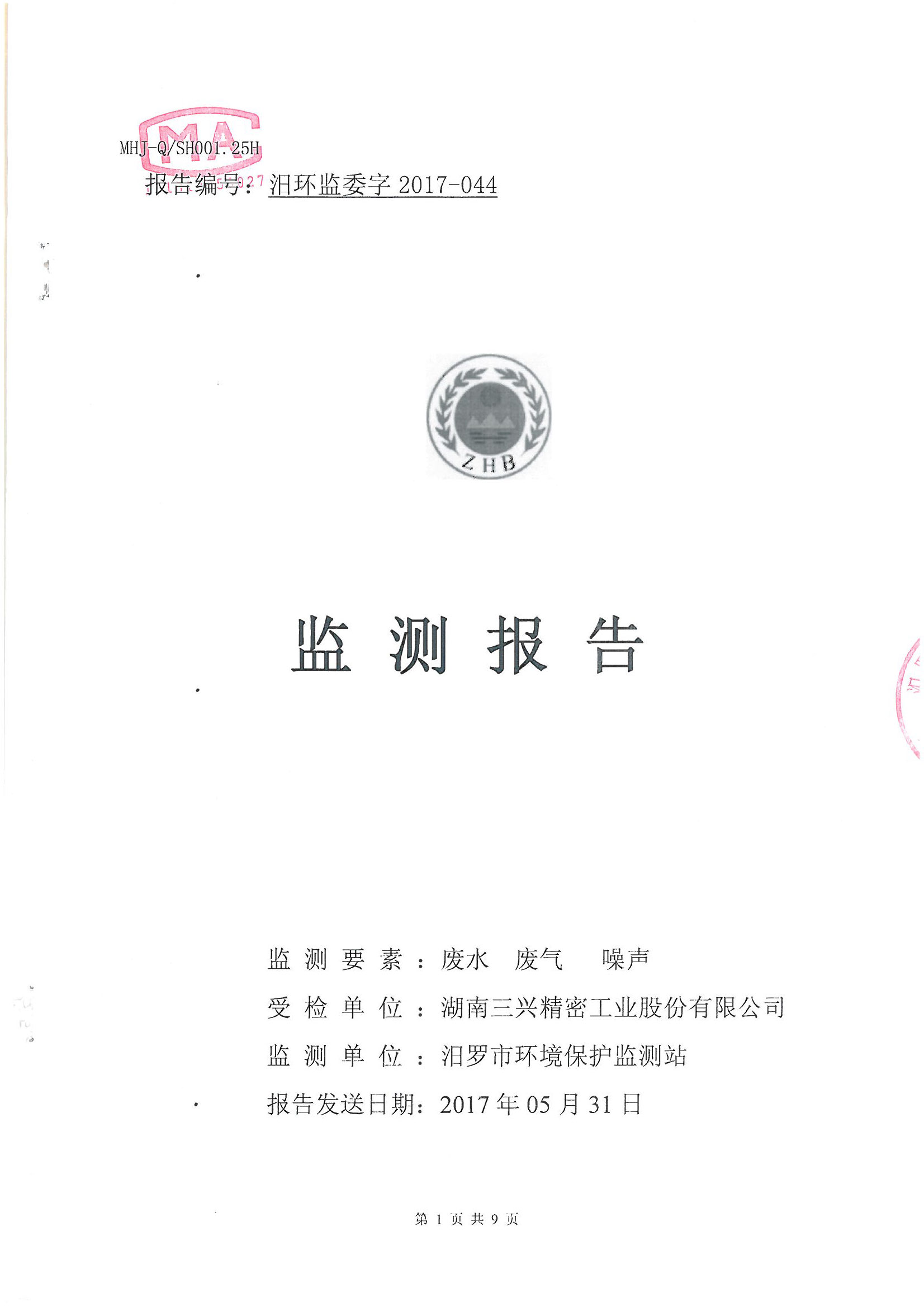 湖南三興環(huán)保監(jiān)測報告